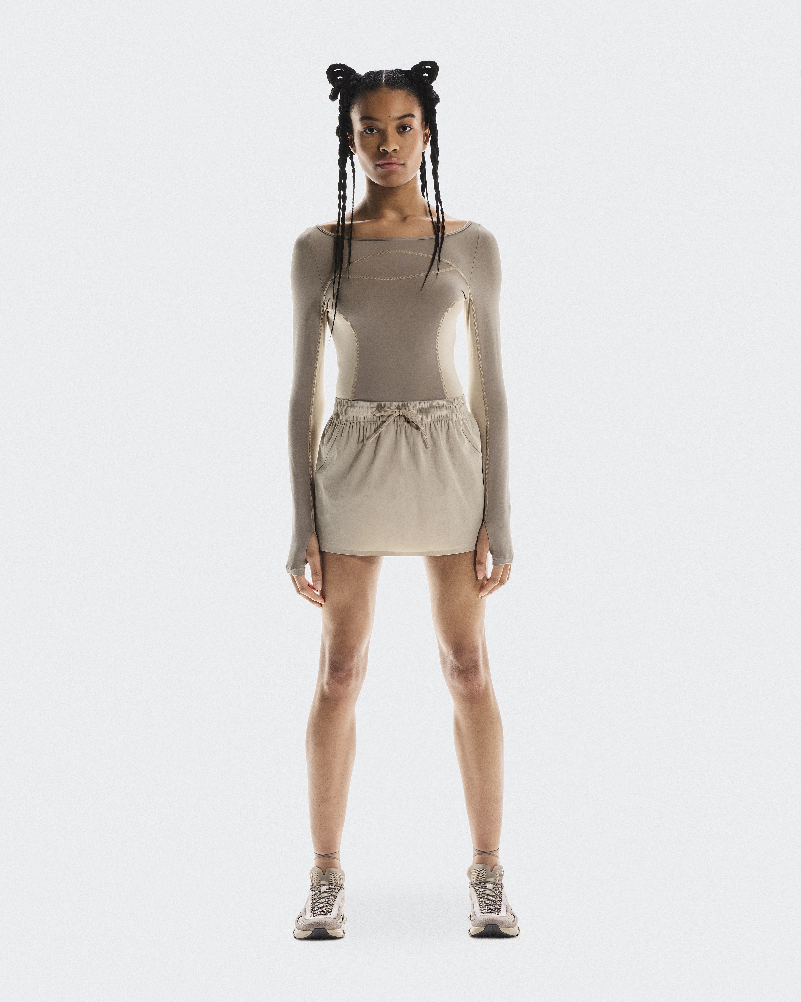 Created in partnership with FKA twigs, this stretchy track skort features an elastic waistband, and an inner brief. Materials & Transparency Materials Main Fabric: Polyamide (recycled) 91%, Elastane 9%. Key features - Weight: Noneg - Created in partnership with FKA twigs - A skirt with built-in shorts for comfort - Stretchy, comfortable woven material - Elastic waistband for a secure fit - Bonded hems for a smooth feel - Adjustable drawcord waist - Glossy logo for a sleek, stylish look