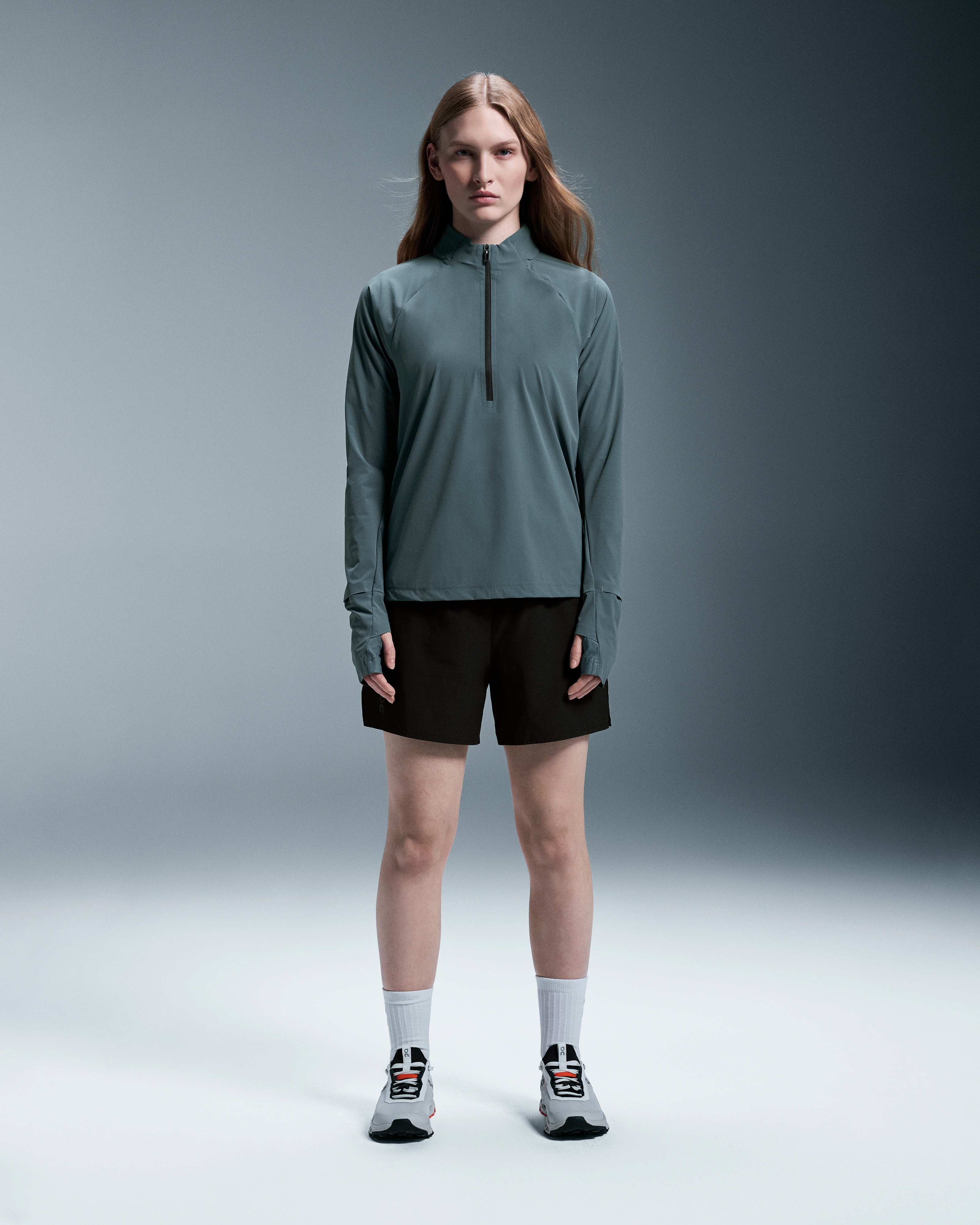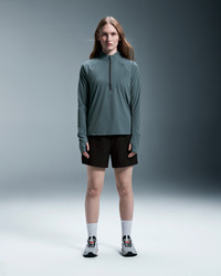 The light and packable midlayer made for trail running, complete with optional hood and watch window. Materials & Transparency Key features - Weight: Noneg - Tapered folds provide shape and structure at the back - Long quarter zip for easy on-off while you're on the move - Four-way stretch mesh for airflow and unrestricted movement - Durable water-repellent coating for light protection - Packable hood can be stored in the collar when not in use - Thumb holes keep sleeves in place on cold weather runs - Watch window lets you check the time without missing a beat - Raglan sleeves for comfortable shoulder action
