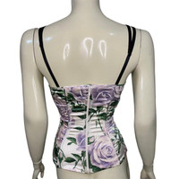 90s Dolce & Gabbana boned corset with bra Marked size 38 Worn in a size medium mannequin, 6ft height Built-in matching bra Center back zipper Hook and eye Adjustable straps Details Online since:2024-05-15 Categories: women Category: Clothing Sub-category: Tops Designer: Dolce & Gabbana Condition: 0 Material: Silk Colour: Multicolour Size: 38 IT Location: empty Reference: 44194991