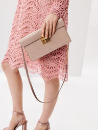 THE ALIBI CLUTCH CAPTURES OSCAR DE LA RENTA’S INHERENTLY ELEGANT STYLE. THIS GLOSSY BLUSH ALLIGATOR VERSION IS FINISHED WITH LEATHER DETAILS AND A GOLD CLASP. MATERIAL: ALLIGATOR LEATHER MADE IN ITALY STYLE 18PH9001ALL_BSH