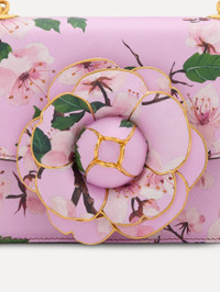 The classic TRO bag is reworked in eye-catching cherry blossom printed Saffiano leather with a detachable chain shoulder strap. The exquisite custom-created, metal-trimmed gardenia applique featured prominently at the front sets this handbag apart—making it the perfect companion for day or night. Details - Dimensions: 21 cm x 13.5 cm x 6.5 cm - Weight: 580 grams - Chain Length 120 cm - Drop Length 57.1 cm - Interior Pocket - Magnetic Closure - Detachable Chain Shoulder Strap - Light Taupe Microfiber Interior - Fits Up to an iPhone 16 Pro - Style Code: 25PH001SAF_PIN - Country of Origin: Italy Materials & Care - - 100% Calfskin - - Saffiano leather is an embossed calfskin grain leather that is generally resistant to scratches. - - Remove dust regularly with a dry or slightly damp cloth and allow to dry completely. - - Avoid prolonged exposure to direct sunlight to prevent discoloration. - - Keep away from heat sources to prevent the leather from drying out or becoming rigid. - - Store in its original packaging in a cool, dry place, protected from light, heat, and humidity. - - For oil stains, gently wash with water and mild soap. If needed, test a degreasing agent on a hidden area before applying. - - For other stains, wipe lightly with lukewarm water. If the stain persists, try using soapy water with a gentle touch.