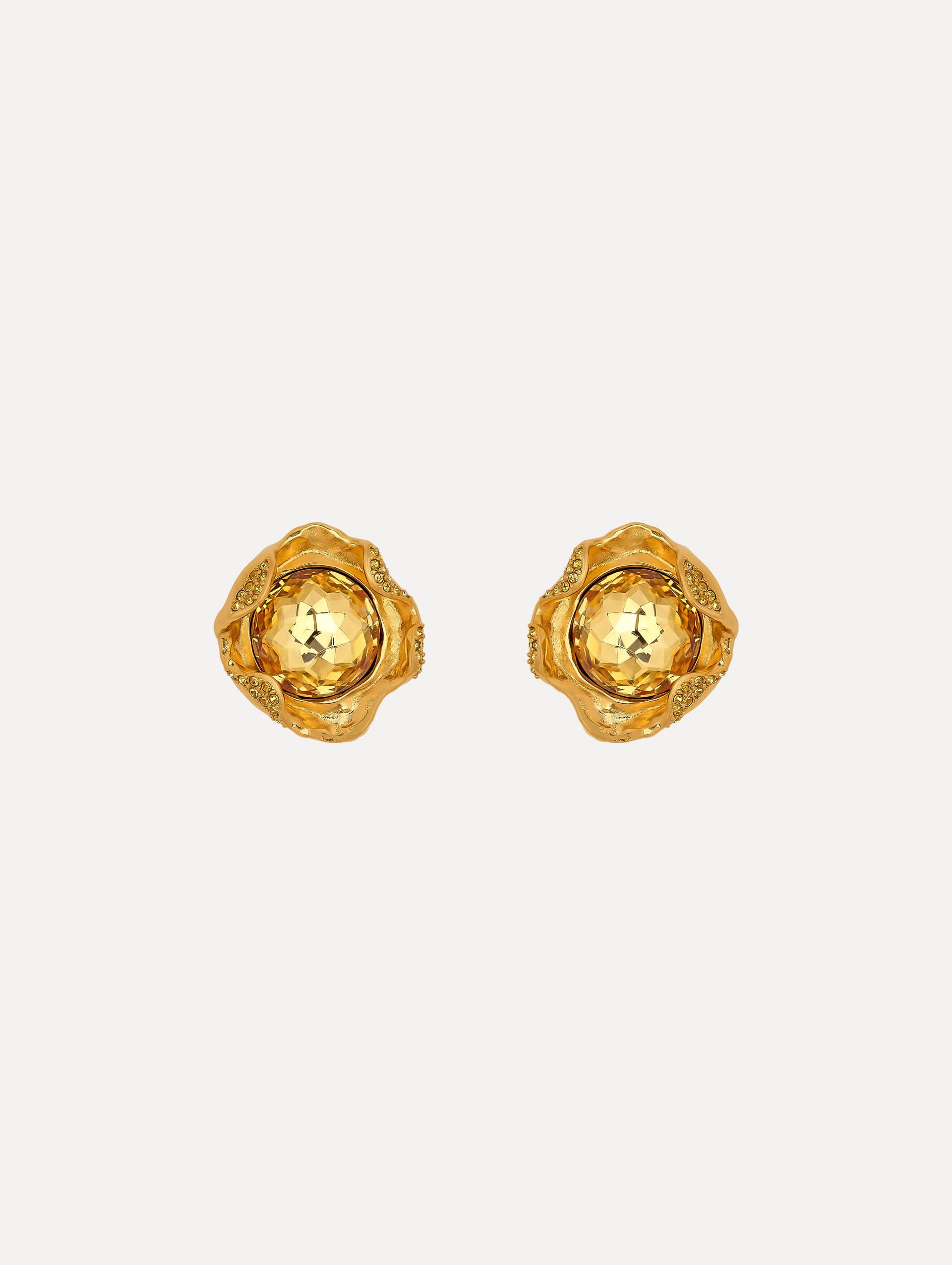 Sculpted into abstract forms reminiscent of a nest, these earrings showcase a statement stone at their center and are accented by delicate glass crystals. Pair with the coordinating ring. Details - Dimensions: 23 mm x 22 mm - Weight: 17 grams - Post Backs - For Pierced Ears - European Glass Crystals - Style Code: P25J919_TOP - Country of Origin: Italy Materials & Care - 80% Brass, 20% Crystal Glass
