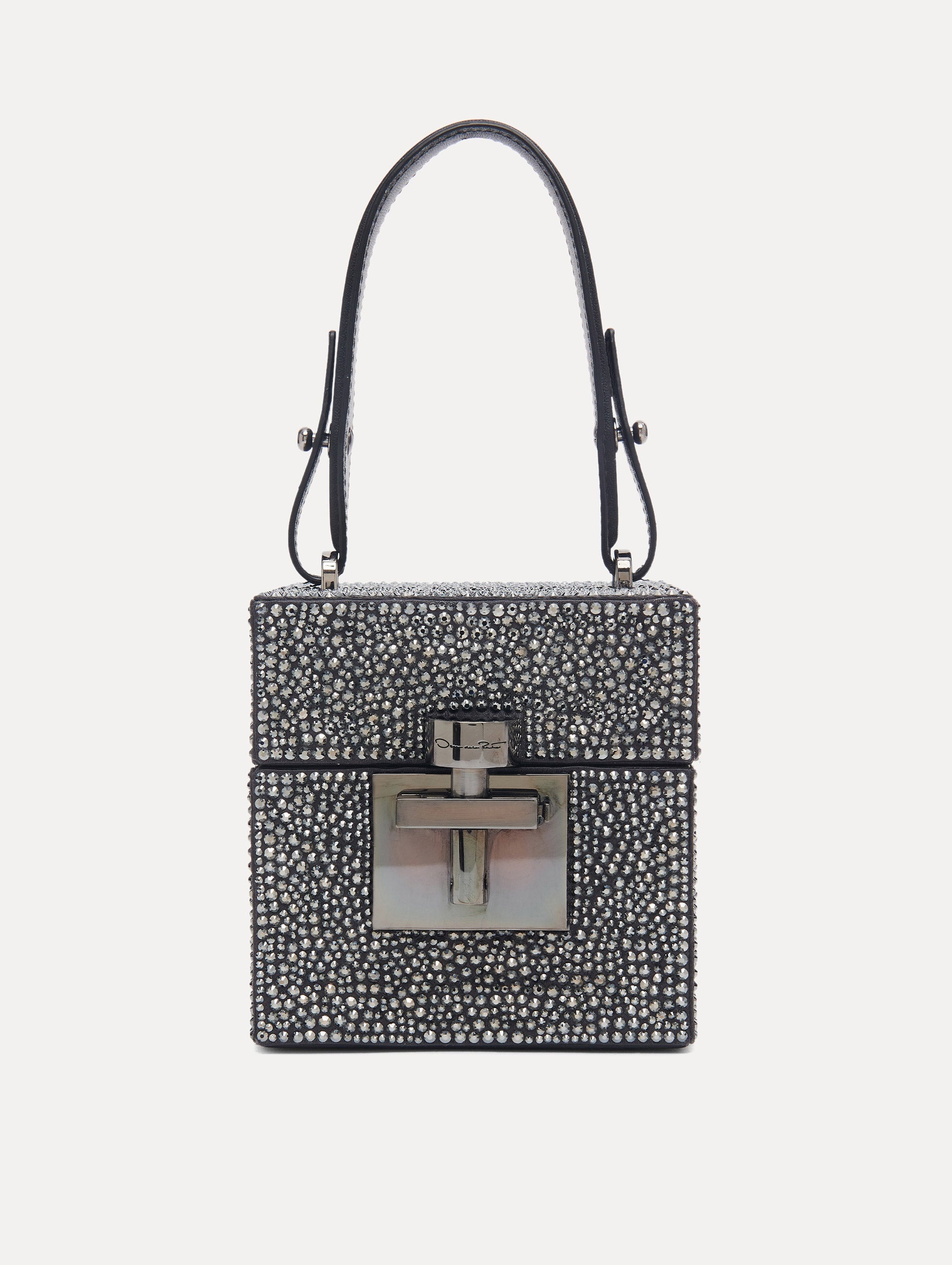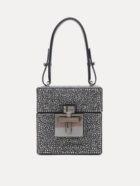 IN GRAPHITE-HUED SATIN COVERED ENTIRELY WITH PAVE CRYSTALS, THE SIGNATURE ALIBI CUBE BOASTS A STRUCTURED SILHOUETTE AND FEATURES A TOP HANDLE AND TONAL HARDWARE. 1 INTERIOR POCKET / PERSONAL MIRROR / TOP HANDLE / CHAIN SHOULDER STRAP / PUSH-LOCK CLOSURE / SPOT CLEAN DIMENSIONS: 11 CM X 11 CM X 11 CM MATERIAL: 100% SATIN (72% VISCOSE / 28% SILK) MADE IN ITALY STYLE 23FH825CRT_GRP
