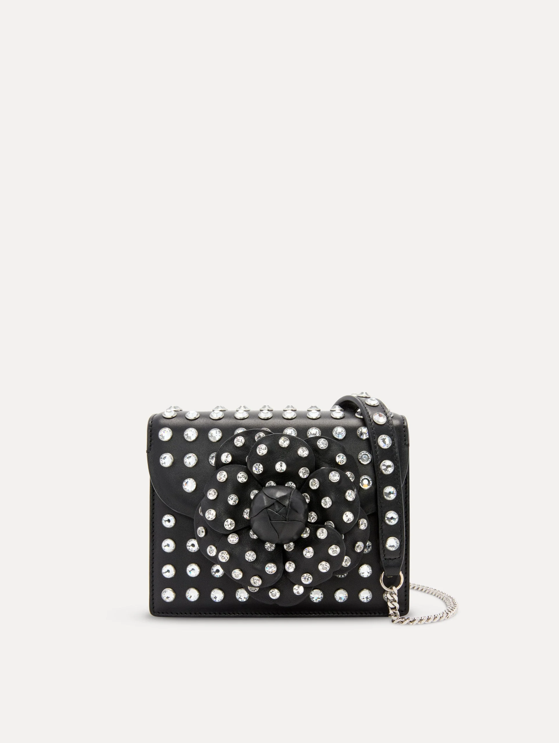 OUR SIGNATURE MINI TRO IS EMBOLDENED FOR FALL 2024 WITH ALL-OVER CRYSTAL STUD DETAILING ON A BLACK NAPPA LEATHER BASE. SLIP THE MIXED-MEDIA, DETACHABLE CHAIN STRAP OVER YOUR SHOULDER WITH DAYTIME OR EVENING LOOKS. INTERIOR POCKET / PUSH-LOCK CLOSURE / DETACHABLE CHAIN SHOULDER STRAPS / LIGHT TAUPE MICROFIBER INTERIOR / FITS UP TO AN IPHONE 14 PRO / SPOT CLEAN DIMENSIONS: 17 CM X 13.5 CM X 8 CM WEIGHT: 550 GRAMS CHAIN LENGTH 120 CM / DROP LENGTH 57.1 CM MATERIAL: 100% LAMB LEATHER MADE IN ITALY STYLE 24FH003SUD_BLK