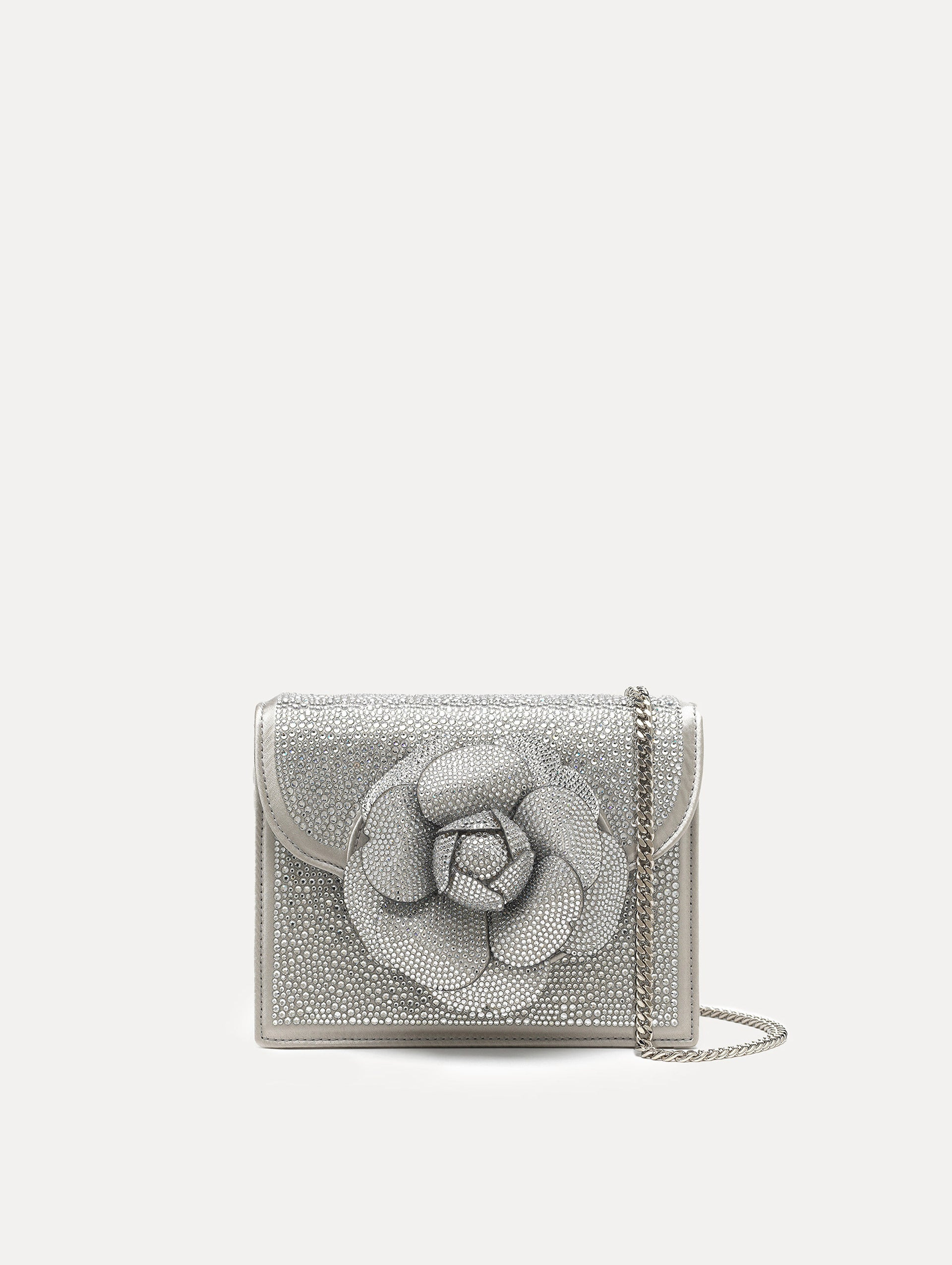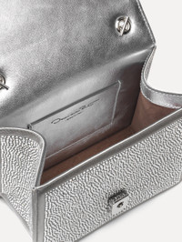OUR SIGNATURE MINI TRO BAG IS REIMAGINED FOR FALL '18 IN SILVER SATIN COVERED ENTIRELY WITH SWAROVSKI CRYSTALS. SLIP THE SILVER-TONE CHAIN STRAP OVER YOUR SHOULDER WITH DAY OR NIGHT LOOKS. DIMENSIONS: L 6.7" X H 5.1" D 3" L 17CM X H 13CM X D 7.5CM LONG CHAIN DROP: 22" / 57.1CM MATERIAL: LEATHER / SATIN / CRYSTAL GLASS MADE IN ITALY STYLE 0H2003CRT_SIL