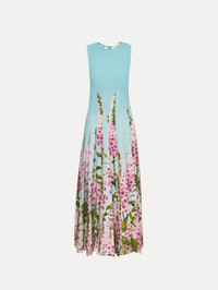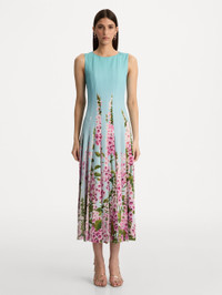 Chiffon insets slice through the fitted bodice and flared skirt, creating fluid pleats that move with ease. The design blooms into a degrade foxglove motif, where cascading blossoms climb the length of the silhouette with painterly grace. Details - Sleeveless - Jewel Neckline - Concealed Back Zipper - Unlined - Country of Origin: Italy - Style Code: 26RN258FPY_LLS Materials & Care - 92% Polyester, 8% Elastane - Dry clean only.