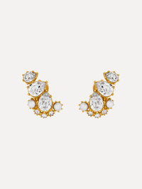 These ear cuffs reimagine classic elegance with a bold, modern edge. Oversized prongs cradle a constellation of pear-cut crystals and luminous faux pearls, creating a striking play of structure and shine. Details - Dimensions: 32 mm x 30 mm - Weight: 37 grams - Clip Back with Comfort Pads - European Glass Crystals - Country of Origin: Italy - Style Code: R26J919_PRL Materials & Care - 70% Brass, 30% Crystal Glass - Avoid exposing your jewelry to harsh chemicals. - Lotions, cosmetics, hairspray and perfumes can cause chemical reactions that can cause the finish to deteriorate. - Before handling, washing hands after applying makeup and hair products will help to preserve the finish. - Do not wear in the pool, on the beach or in the shower. - Wipe away dirt and body oils with a slightly damp microfiber jewelry cloth or cotton ball and allow to dry. - Store separately in cloth pouches or small boxes to minimize scratching.