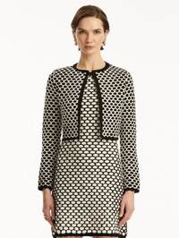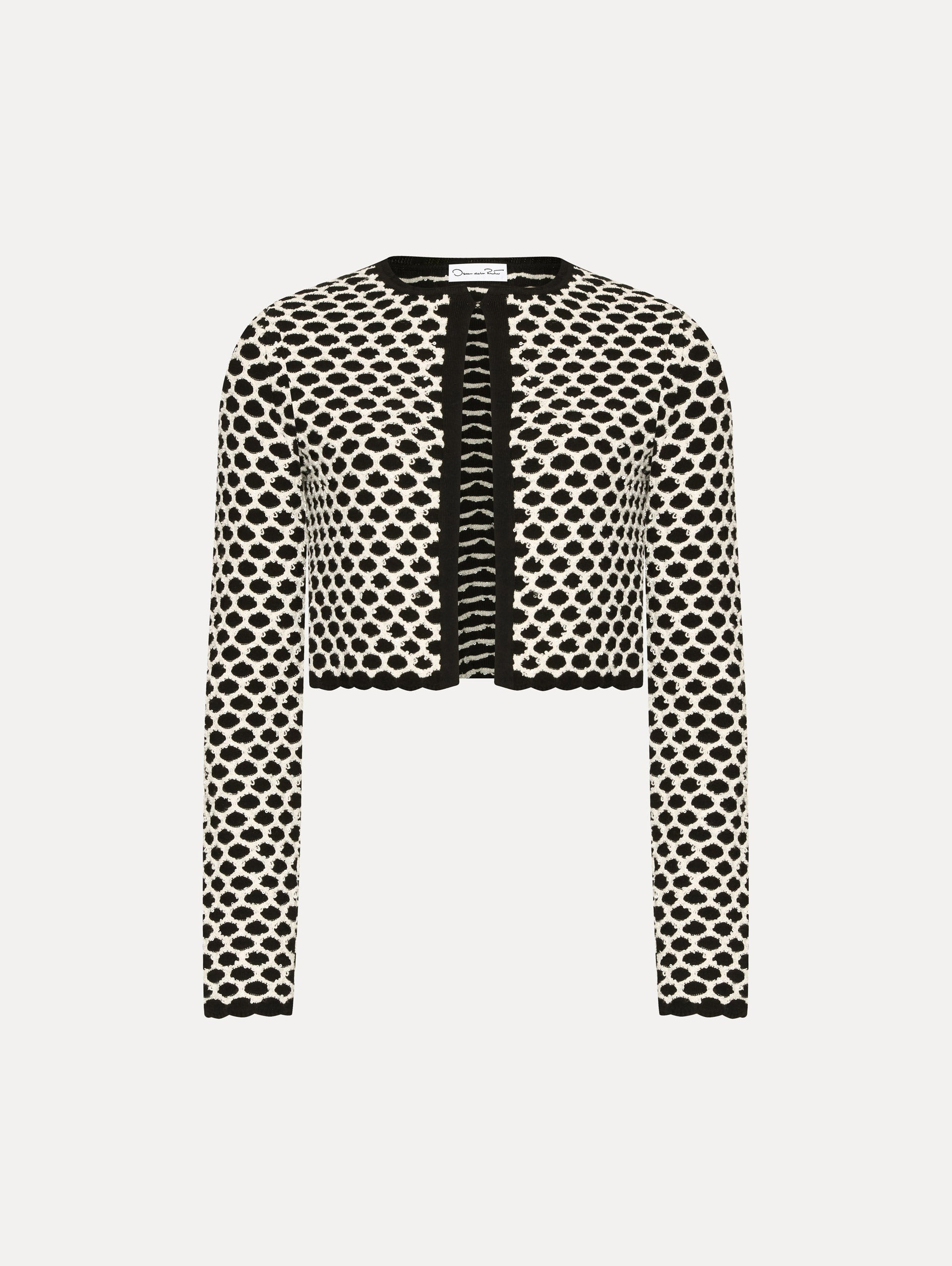Cropped cardigans are enjoying their moment in the sun amongst the fashion set. Especially dynamic with a honeycomb pattern and sequin detailing, it's a comfortable and effortless overlayer designed to enhance. Details - Long Sleeves - Jewel Neckline - Open Front with Hook-and-Eye Closure - Cropped Length - Unlined - Style Code: 25PN162HBW_BKH - Country of Origin: Italy Materials & Care - 57% Viscose, 29% Polyester, 14% Silk
