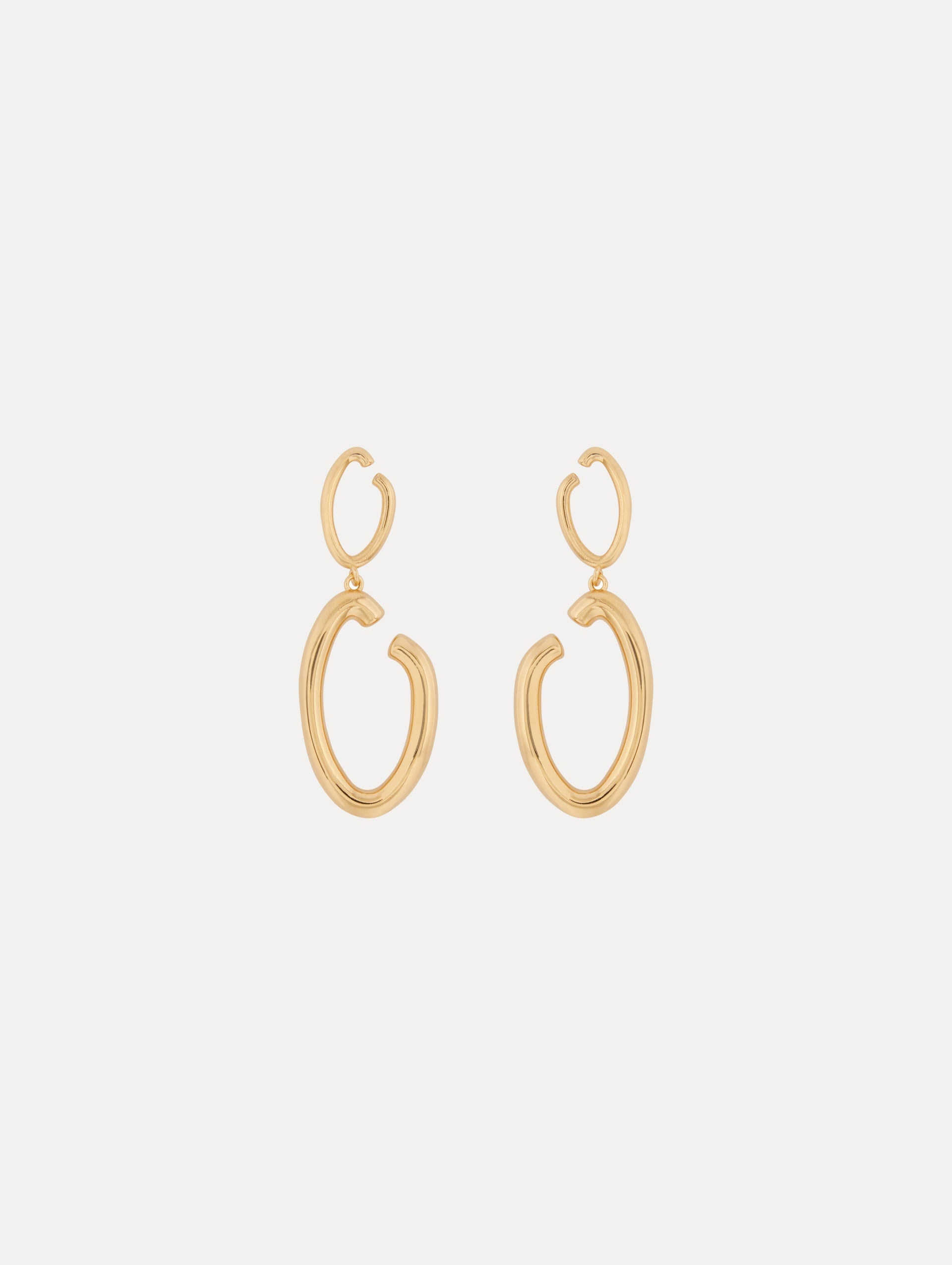 THESE HOOP EARRINGS BRING THE OSCAR DE LA RENTA NAME TO THE FORE. SCULPTED INTO THE HOUSE'S SIGNATURE O EMBLEM, THESE GILDED EARRINGS PAIR BEST WITH SWEPT-UP HAIR. POST BACKS / FOR PIERCED EARS DIMENSIONS: 22 X 1.5 INCHES 114 GRAMS MATERIAL: 100% BRASS MADE IN ITALY STYLE S24J923_GOL