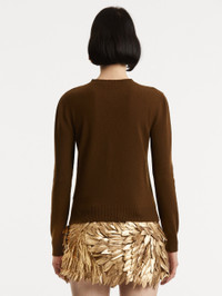 A refined choice for both day and evening, this cashmere pullover is finished with long sleeves and a crew neckline. Detailed with the 'O' Flower, made of the interlocking Oscar 'O' emblem, this sweater subtly showcases the brand's heritage. Details - Long Sleeves - Crew Neckline - Pullover Style - Ribbed Trim - Unlined - Style Code: 25FN123STB_BRN - Country of Origin: Italy Materials & Care - - 100% Cashmere - - Dry clean only.