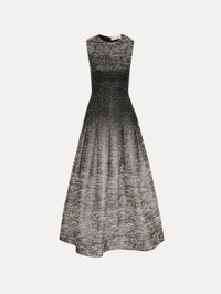 Shimmering with a gradient of light, this dress in ombre lurex boucle jacquard transitions from deep shadow to luminous silver. Its tailored silhouette tempers the radiance with refined structure, creating a polished piece that catches every glance. Details - Sleeveless - Jewel Neckline - Fit-and-Flare Silhouette - Concealed Back Zipper - 100% Silk Lining - Country of Origin: Italy - Style Code: 26RN651OLJ_BLI Materials & Care - 49% Polyester-Cotton Blend, 36% Polyester, 17% Virgin Wool, 2% Polyamide; Lining: 100% Silk - Dry clean only.