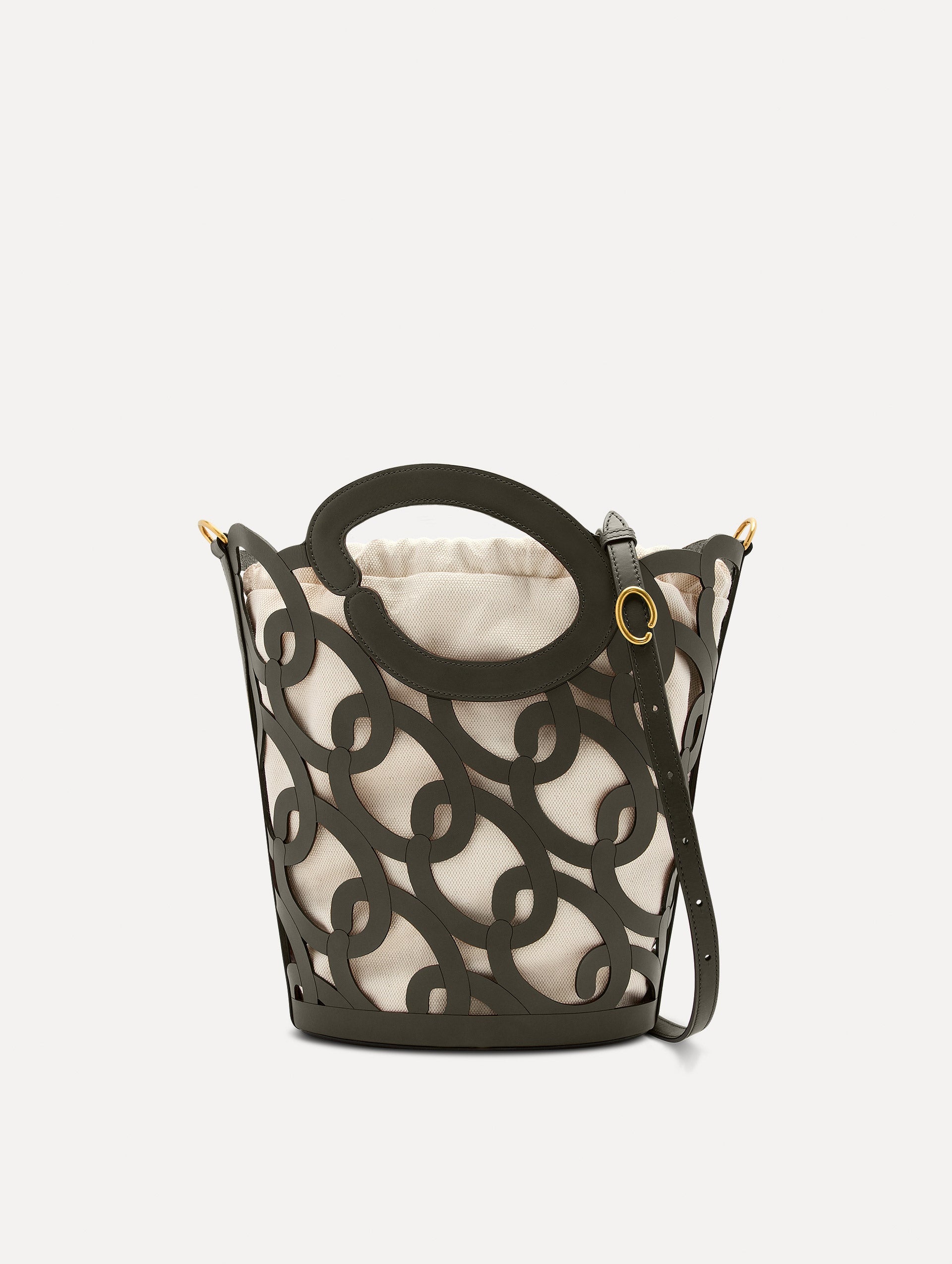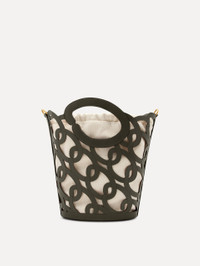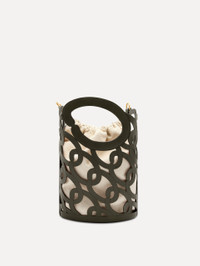 This tote is crafted from Oscar de la Renta’s signature chain-link motif, formed by interlocking 'O' emblems that celebrate the brand’s legacy. A large 'O' forms the top handle, blending function with artistry. Made from eco-friendly vegetable-tanned leather, it includes a removable interior pouch for added versatility. Details - Dimensions: 22 cm x 14 cm x 33 cm - Weight: 980 grams - Short Strap: Top Handle Drop Length 8 cm - Long Strap: Drop Length 55 cm - Drawstring Closure - Top Handles - Adjustable, Detachable Shoulder Strap - Removeable Pouch Interior - Style Code: 25PH172LSR_BIR - Country of Origin: Italy Materials & Care - - 100% Calfskin - - This leather is naturally dyed with tannins and finished with a light protectant, making it prone to scratches or spots. - - Remove dust regularly with a dry or slightly damp cloth and allow to dry completely. - - Avoid prolonged exposure to direct sunlight to prevent discoloration. - - Keep away from heat sources to prevent the leather from drying out or becoming rigid. - - Store in its original packaging in a cool, dry place, protected from light, heat, and humidity. - - For oil stains, dab lightly with a soft cloth and sprinkle with baby powder to absorb. Dust off and wipe with a damp cloth. - - For other stains, gently wipe with a slightly damp cloth. If the stain persists, consult a trusted leather care specialist.