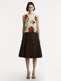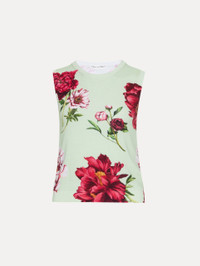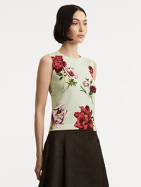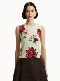This classic ribbed-knit tank is printed with the Peony motif. Cut in a form-fitting silhouette, this style features a crew neckline and banded trim. Wear alone for a sleeveless statement or pair with its coordinating cardigan for optimal versatility. Details - Sleeveless - Crew Neckline - Pullover Style - Ribbed Trim - Unlined - Style Code: 25FN126PEO_PIT - Country of Origin: Italy Materials & Care - - 57% Cotton, 43% Viscose - - Dry clean only.