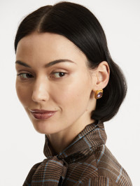 These stud earrings offer a refined take on bold simplicity. Cushion-cut crystals, framed by softly rounded rectangular forms, catch the light from every angle. Details - Dimensions: 2.5 cm - Weight: 20 grams - Post Backs / For Pierced Ears / European Glass Crystals - Style Code: F25J911_AME - Country of Origin: Italy Materials & Care - - 91% Brass, 9% Crystal Glass - - Avoid exposing your jewelry to harsh chemicals. - - Lotions, cosmetics, hairspray and perfumes can cause chemical reactions that can cause the finish to deteriorate. - - Before handling, washing hands after applying makeup and hair products will help to preserve the finish. - - Do not wear in the pool, on the beach or in the shower. - - Wipe away dirt and body oils with a slightly damp microfiber jewelry cloth or cotton ball and allow to dry. - - Store separately in cloth pouches or small boxes to minimize scratching.