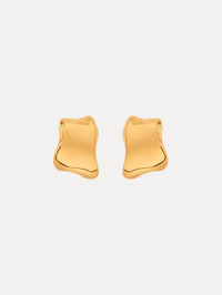 These contemporary earrings showcase a sleek, smooth metal surface, artfully molded into abstract forms. Their fluid, sculptural design offers a modern take on minimalism. Details - Dimensions: 2.2 cm x 3 cm - Weight: 20 grams - Clip Backs with Comfort Pads - Style Code: R25J921_GOL Materials & Care - 100% Brass