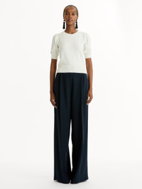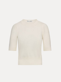 Knit from luxurious virgin wool in a rich cognac hue, this short-sleeve pullover offers a refined take on everyday knitwear. Slightly puffed sleeves add a touch of femininity, while the classic crew neckline ensures timeless appeal. Details - Short Sleeves - Crew Neckline - Pullover Style - Ribbed Trim - Unlined - Style Code: 25PN1344LEO_IVR - Country of Origin: Italy Materials & Care - 100% Wool - Dry clean only.