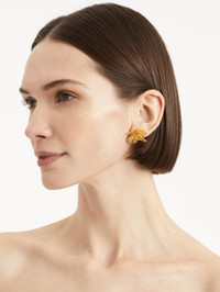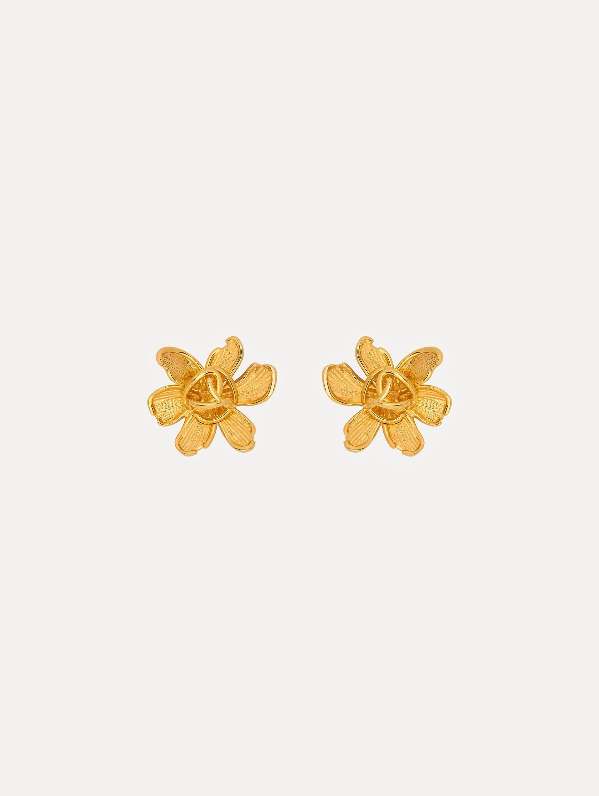 These textured floral earrings hold a subtle surprise, with sculpted petals that echo the curves of the Oscar 'O' and a braided emblem at the center drawn from this season’s signature motif. Details - Dimensions: 23 mm x 25 mm - Weight: 8 grams - Post Backs / For Pierced Ears - Style Code: F25J9362_GOL - Country of Origin: Italy Materials & Care - - 100% Brass - - Avoid exposing your jewelry to harsh chemicals. - - Lotions, cosmetics, hairspray and perfumes can cause chemical reactions that can cause the finish to deteriorate. - - Before handling, washing hands after applying makeup and hair products will help to preserve the finish. - - Do not wear in the pool, on the beach or in the shower. - - Wipe away dirt and body oils with a slightly damp microfiber jewelry cloth or cotton ball and allow to dry. - - Store separately in cloth pouches or small boxes to minimize scratching.