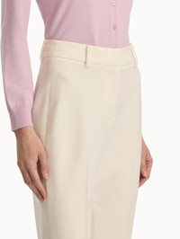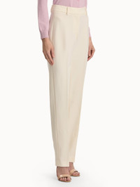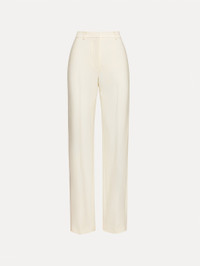 Tailored from double-faced wool in ivory, these suiting pants embody timeless refinement. Sitting high at the waist, the streamlined silhouette falls to a classic straight leg, offering a polished foundation for any wardrobe. Details - High Waisted - Banded Waist - Straight Leg Silhouette - Side Seam Pockets - Zip Fly with Hook-and-Bar Closure - Unlined - Style Code: 25PN3223DSW_IVR - Country of Origin: USA Materials & Care - - 94% Wool, 5% Elastane, 1% Polyamide - - Dry clean only.