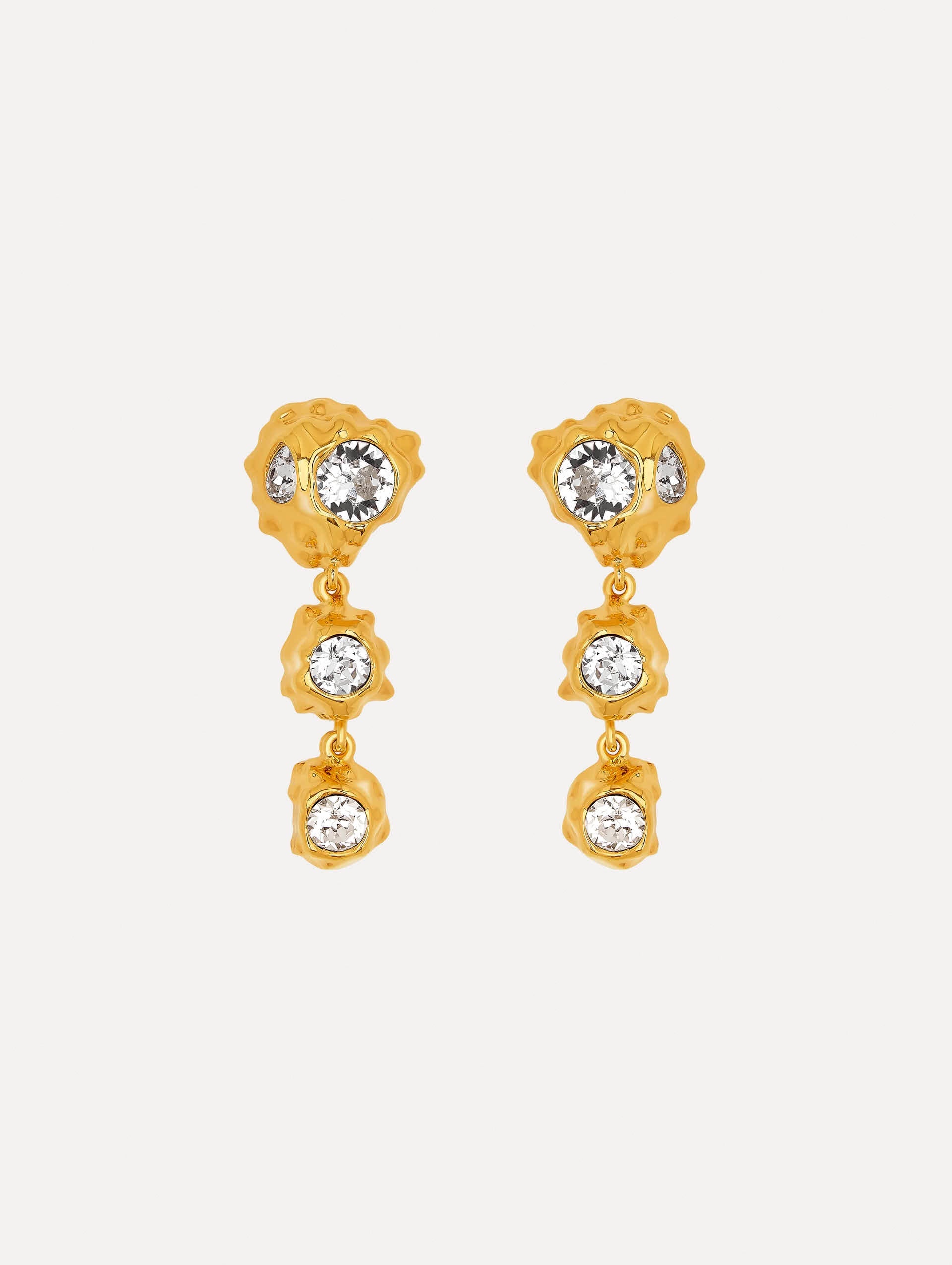 Set with statement glass crystals, these earrings feature a unique textured finish which adds depth and sophistication, contrasting the glimmer of the glass crystals. Pair with the coordinating ring. Details - Dimensions: 49 mm x 19 mm - Weight: 22 grams - Post Backs - For Pierced Ears - European Glass Crystals - Style Code: P25J923_CRT - Country of Origin: Italy Materials & Care - 88% Brass, 10% Glass, 1% Bronze, 1% Gold