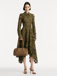 This silhouette unites decisive lines with soft curves in a compact yet spacious form. Crafted from supple suede, it takes on a sculptural elegance, with gently curved sides that echo the contours of Oscar de la Renta’s signature 'O.' Elongated top handles sit comfortably over the shoulder, while subtle gold hardware and an emblem-stamped tag complete the piece with quiet sophistication. Details - Dimensions: 37 cm x 21 cm x 14 cm - Weight: 1,260 grams - Top Handle Drop Length 24 cm - 4 Interior Pockets - Zip Closure - Light Taupe Microfiber Interior - Style Code: 25FH183SUE_TAU - Country of Origin: Italy Materials & Care - - 100% Suede Leather - - Avoid contact with water, as moisture may damage the material. - - Before use, apply a suede or nubuck protective non-aerosol spray to help guard against water and stains. - - To remove dust, gently brush the surface with a specialty suede brush. - - If watermarks appear, gently dab with a clean, dry cloth to minimize their appearance. - - Store in its original packaging in a cool, dry place, protected from light, heat, and humidity. Keep the bag stuffed and upright to maintain its shape.