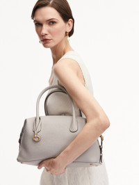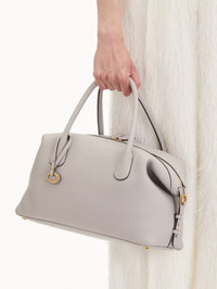 This classic duffle effortlessly combines sophistication with utility. Featuring an expandable shape with top handles and a removable shoulder strap for versatile styling, it is ideal for weekend getaways and everyday outings. Detailed with various Oscar de la Renta signature O emblems on the hangtag and bag feet, this timeless duffle subtly pays homage to the brand's legacy. Details - Dimensions: 35 cm x 16.5 cm x 22 cm - Weight: 800 grams - Short Strap: Top Handle Drop Length 13 cm - Long Strap: Strap Drop Length 54 cm - 2 Interior Pocket - Zipper Closure - Top Handles - Adjustable, Detachable Shoulder Strap - Removable, Logo Tag - Light Taupe Microfiber - Spot Clean - Made in Italy - Style Code: 00NH166PLT_GRI Materials & Care - 100% Calf Leather