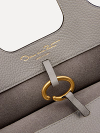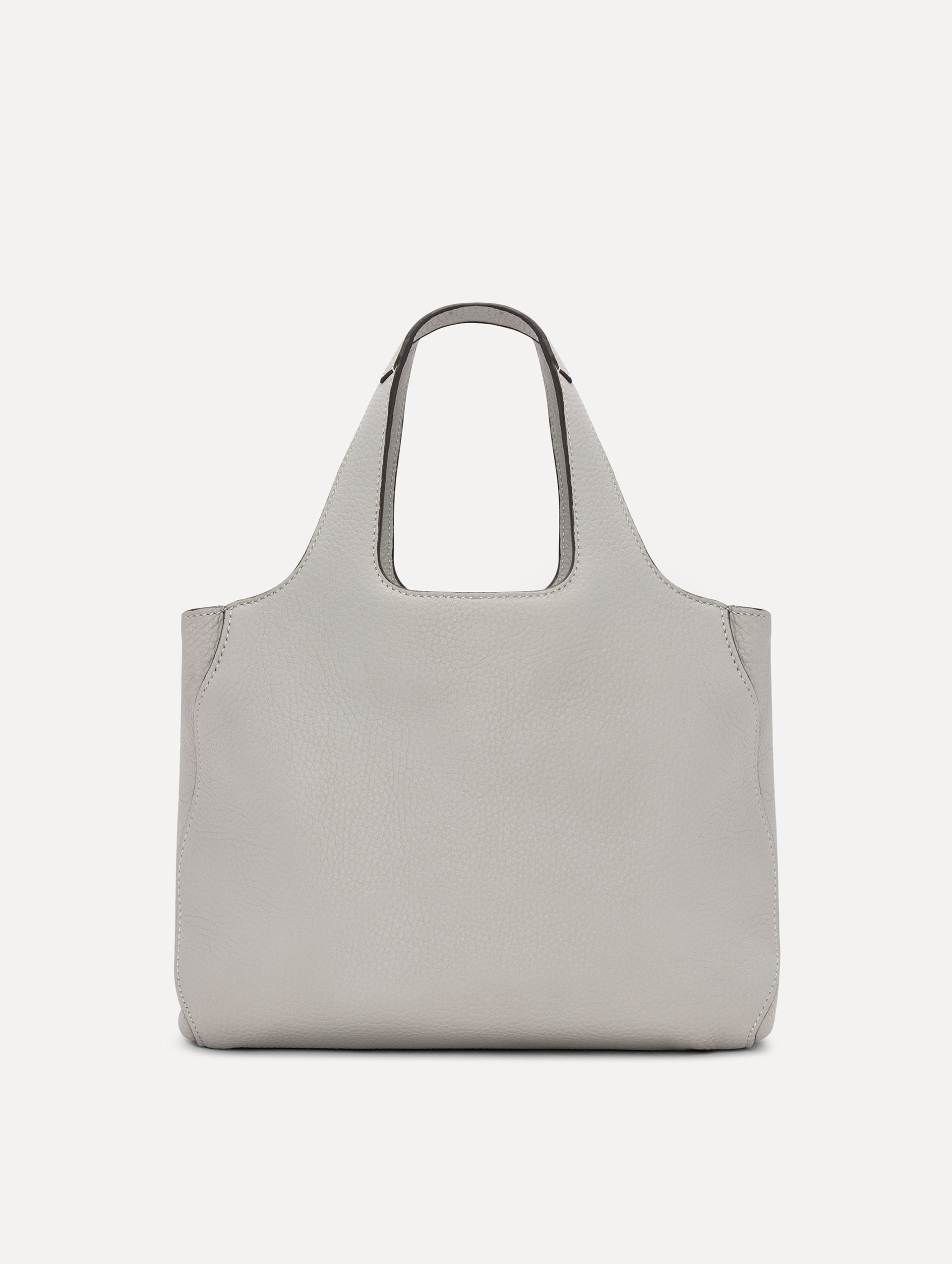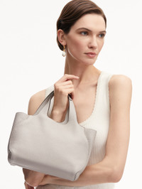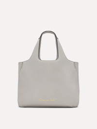 Crafted from full-grain pebbled leather, this petite version of a classic style seamlessly blends elegance with versatility. The bag can be worn with two distinct looks - Either open, allowing for its spacious interior to accommodate all of your daily essentials or clasped at the top for additional security. Detailed with Oscar de la Renta's signature O at the clasp, this tote subtly showcases the brand's heritage, with the curved seams of the bag echoing the graceful curvature of the logo. Details - Dimensions: 22.5 cm x 8.5 cm x 18 cm - Weight: 380 grams - Top Handle Drop Length 12.5 cm - Top Handles - Logo D-Ring Closure - Unlined - Spot Clean - Made in Italy - Style Code: 00NH167PLT_GRI Materials & Care - 100% Calf Leather