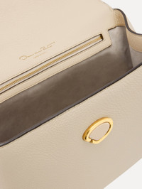 THIS VERSATILE BAG COMBINES SOPHISTICATION WITH PRACTICALITY, FEATURING A SPACIOUS COMPARTMENT WITH A TOP HANDLE AND REMOVEABLE SHOULDER STRAP FOR EASY STYLING. ADORNED WITH OSCAR DE LA RENTA'S SIGNATURE O AT THE ORNAMENTAL BAG TAG AND A DISCREET MAGNETIC CLOSURE, THIS BAG EXUDES ELEGANCE IN EVERY DETAIL. 2 INTERIOR POCKETS / MAGNETIC CLOSURE / TOP HANDLE / ADJUSTABLE, DETACHABLE SHOULDER STRAP / DETACHABLE LOGO TAG / LIGHT TAUPE MICROFIBER INTERIOR / FITS UP TO AN IPHONE 14 PRO MAX / SPOT CLEAN DIMENSIONS: 31 CM X 21 CM X 12 CM WEIGHT: 970 GRAMS SHORT STRAP: TOP HANDLE DROP LENGTH 8 CM LONG STRAP: STRAP LENGTH 102-120 CM / DROP LENGTH 49-58 CM MATERIAL: 100% CALF LEATHER MADE IN ITALY STYLE 00NH157PLT_IVR