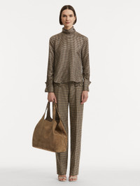 Crafted from supple suede, this large tote seamlessly blends elegance with versatility. The bag can be worn with two distinct looks: worn open for a spacious silhouette or clasped at the top for added security. Detailed with Oscar de la Renta's signature 'O' at the clasp, this tote subtly showcases the brand's heritage, with the curved seams of the bag echoing the graceful curvature of the logo. Details - Dimensions: 40 cm x 34 cm x 16 cm - Weight: 1,000 grams - Top Handle Drop Length 25 cm - Top Handles - Logo D-Ring Closure - Unlined - Style Code: 25FH1602SUE_TAU - Country of Origin: Italy Materials & Care - - 100% Suede Leather - - Avoid contact with water, as moisture may damage the material. - - Before use, apply a suede or nubuck protective non-aerosol spray to help guard against water and stains. - - To remove dust, gently brush the surface with a specialty suede brush. - - If watermarks appear, gently dab with a clean, dry cloth to minimize their appearance. - - Store in its original packaging in a cool, dry place, protected from light, heat, and humidity. Keep the bag stuffed and upright to maintain its shape.