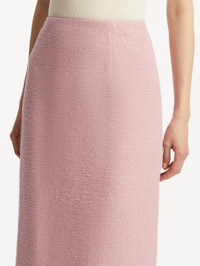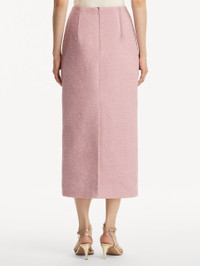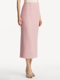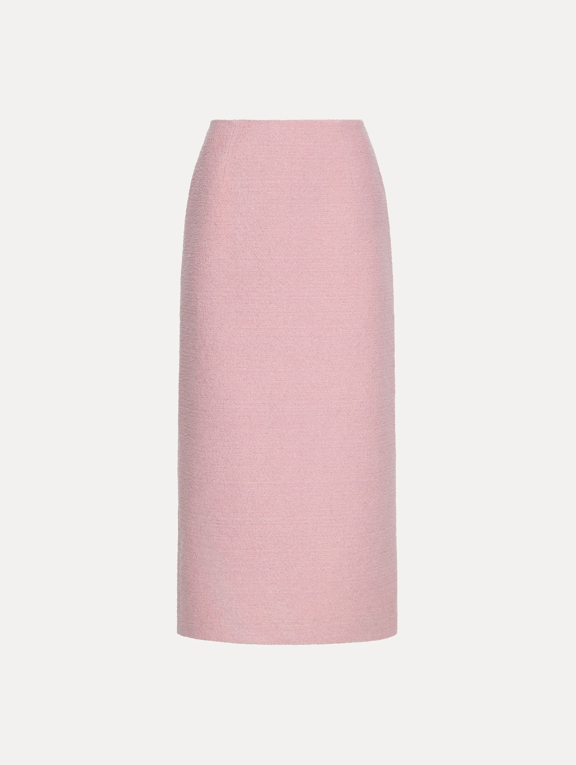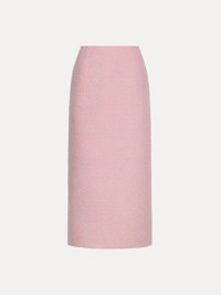 Tailored from cotton wool tweed in a soft shade of lily, this skirt embodies timeless refinement. Sitting high at the waist, the streamlined silhouette falls to a classic pencil skirt, offering a polished foundation for any wardrobe. Details - High Waisted - Banded Waist - Concealed Back Zipper - Center Back Slit - Style Code: 25PN4012CWD_LIY - Country of Origin: Italy Materials & Care - 64% Cotton, 27% Wool, 9% Polyamide