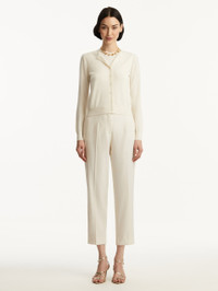 Make this wool-blend cardigan your new go-to layering piece. This long-sleeve style is designed in a timeless shade of ivory and features a crew neckline for the most flattering fit. Details - Long Sleeves - Crew Neckline - Button Front - Ribbed Trim - Unlined - Style Code: 0N145_IVR Materials & Care - 60% Wool, 30% Silk, 10% Cashmere