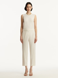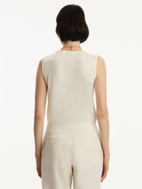 Make this wool-blend tank your new go-to layering piece. This sleeveless style is designed in a timeless shade of ivory and features a crew neckline for the most flattering fit. Details - Sleeveless - Crew Neckline - Pullover Style - Ribbed Trim - Unlined - Style Code: 0N144_IVR Materials & Care - 60% Wool, 30% Silk, 10% Cashmere