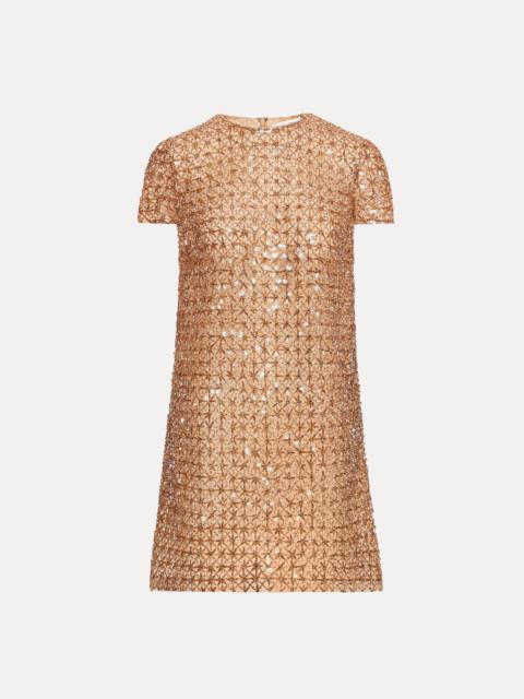 FLORAL GRID EMBROIDERED SHIFT DRESS