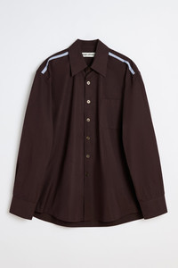Details · Italian poplin fabric · 100% Cotton · Contrast piping detail · Single chest pocket · Mother of pearl buttons · Curved hem · Mitered cuffs · Slightly oversized fit · M4252AD Description Our Above Shirt in Divine Brown Super Poplin. Produced in Italian poplin fabric, the men's Above Shirt has a slightly oversized fit and features contrast piping detail, a single chest pocket, mother of pearl buttons, mitered cuffs and a curved hem.