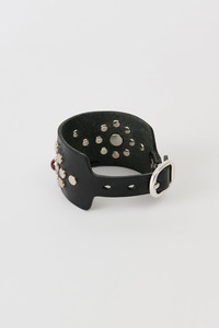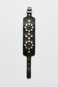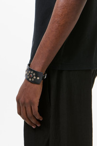 Details · Italian cow leather · Flower studded design · Metal pin buckle closure · Adjustable · Hand cut · 3.5 cm wide · A2268BF Description Our Blossom Bracelet in Flecking Black Leather. Produced in Italian cow leather, the Blossom Bracelet is hand cut and 3.5 cm wide, and features a flower studded design, an adjustable fit and a metal pin buckle closure. This product is crafted from carefully sourced leather. As a natural material, leather carries subtle traces of the animal's life. These natural imperfections bring a unique character to each product, expressing an original and authentic look. The product shall be shaped by its wearer and naturally distress over time to complete the design process.