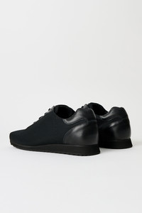 Details · Woven polyester upper · Leather trims · Blunt square toe · Lace closure · Metal Our Legacy rivet · Vibram grip sole · A2257BBN Description Our Blunt Runner in Blackout Nylon. Produced in a compact woven polyester fabric with leather trim details, the Blunt Runner features a blunt square toe, lace closure, a metal Our Legacy bean rivet and a Vibram grip sole. This product is crafted from carefully sourced leather. As a natural material, leather carries subtle traces of the animal's life. These natural imperfections bring a unique character to each product, expressing an original and authentic look. The product shall be shaped by its wearer and naturally distress over time to complete the design process.