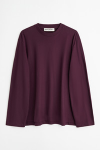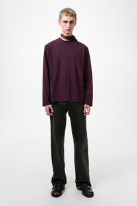 Details · Japanese fabric · 100% Cotton · Oversized boxy fit · Fine ribbed collar · Vented side seams · Dropped tail · M2266BD Description Our Box Longsleeve in Damson High Twist Jersey. Produced in a Japanese cotton fabric, the men's Box Longsleeve has an oversized boxy fit and features a fine ribbed collar, vented side seams and a dropped tail.