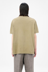 Details · Portuguese fabric · 100% Cotton · Piece dyed · Ribbed collar · Straight hem · Boxy fit · M2256BC Description Our Box T-Shirt in Cavalary Olive Legacy Jersey. Produced in a Portuguese cotton jersey and piece dyed, the mens Box T-Shirt has a relaxed, boxy fit and features a ribbed collar and a straight hem. This garment is manufactured using carefully sourced material with a unique treatment process that will give each garment an individual shade and appearance. This technique could result in some color bleed onto lighter garments or surfaces. The garment shall be shaped by its wearer and naturally distress over time to finish the design process.