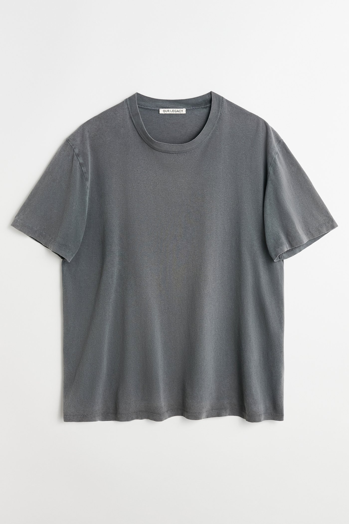 Details · Portuguese fabric · 100% Cotton · Vintage washed · Fine rib collar · Straight hem · Wide boxy fit · M2246BWB Description Our Box T-Shirt in Worn Black Legacy Jersey. Produced in a vintage washed Portuguese cotton jersey, the mens Box T-Shirt has a relaxed, boxy fit and features a ribbed collar and a straight hem. This garment is manufactured using carefully sourced material with a unique treatment process that will give each garment an individual shade and appearance. This technique could result in some color bleed onto lighter garments or surfaces. The garment shall be shaped by its wearer and naturally distress over time to finish the design process.