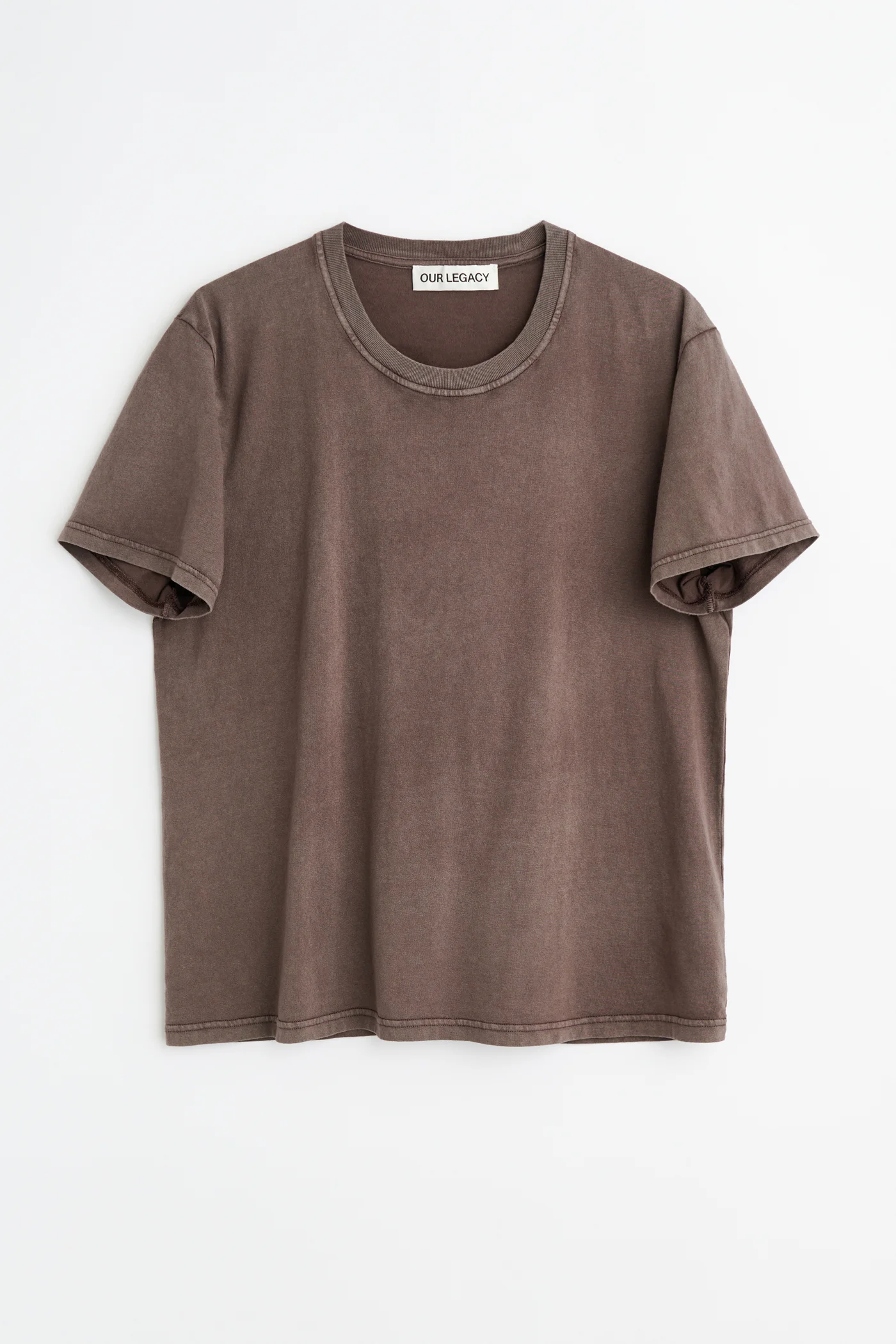 Details · Portuguese jersey · 100% Cotton · Natural pigment dyed · Fine rib collar · Wider neck hole · Topstitch detail at neckline · Straight hem · Regular fit · W2266CT Description Our Classic T-Shirt in Worn Brown Legacy Jersey. Produced in Portuguese cotton jersey, the Classic T-Shirt has a regular fit and features natural pigment dyeing, a fine rib collar, wider neck hole, topstitch detail at neckline and a straight hem. This garment is manufactured using carefully sourced material with a unique treatment process that will give each garment an individual shade and appearance. This technique could result in some color bleed onto lighter garments or surfaces. The garment shall be shaped by its wearer and naturally distress over time to finish the design process.