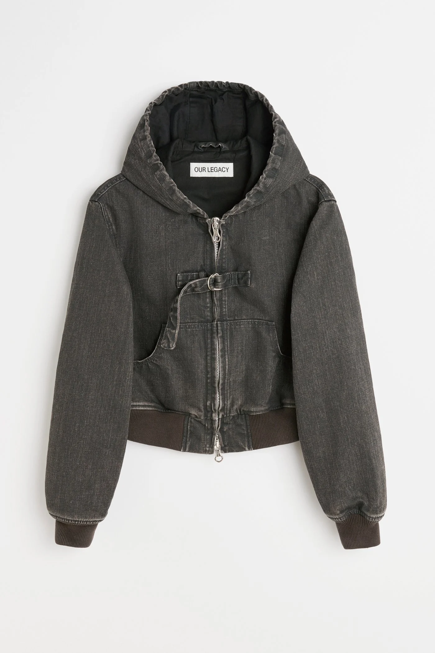 Details · Japanese denim · 100% Cotton · Pigment coated · Washed finish · Elasticated hood · Distressed Lampo two-way zip · D-ring buckle strap · Fully lined · Pouch pockets · Ribbed cuffs and hem · Cropped, boxy fit · W2251CBC Description Our Coast Jacket in Black Coated Wash is produced in a washed Japanese pigment-coated denim. The women's Coast Jacket has a cropped, boxy fit and features an elasticated hood, a distressed Lampo two-way zip, an adjustable D-ring buckle strap, pouch pockets, and ribbed cuffs and hem. This garment is manufactured using carefully sourced material with a unique treatment process that will give each garment an individual shade and appearance. This technique could result in some color bleed onto lighter garments or surfaces. The garment shall be shaped by its wearer and naturally distress over time to finish the design process.