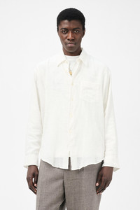 Details · Italian fabric · 100% Cotton · Mother of pearl buttons · Curved hem · Sheer fabric · Single chest pocket · Slightly oversized fit · M2222CW Description Our Coco Shirt in Off White Air Cotton. Produced in a delicate Italian cotton fabric, the Coco Shirt has a slightly oversized cut and features mother of pearl buttons, a single chest pocket and a curved hem. This garment is manufactured using a delicate material with a naturally loose construction. Please handle with care and wash according to washing instructions. Be especially careful with jewelry and other pointed objects that might harm the surface.