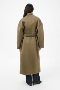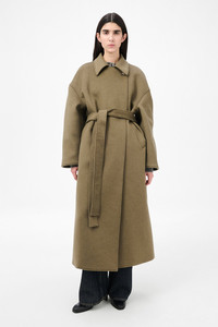 Details · Italian melton fabric · 75% Wool 25% Polyamide · Dropped shoulders · Hidden placket buttoning · Corozo buttons · Two welt pockets · Fully lined · Wrap around construction · Waist belt · Oversized fit · W4251CD Description Our Court Coat in Disruptive Moss Kilo Melton. Produced in Italian melton fabric combining wool and polyamide, the women's Court Coat has an oversized fit and features dropped shoulders, a hidden placket with corozo buttons, wrap-around construction with waist belt, two welt pockets, and is fully lined for comfort and warmth.