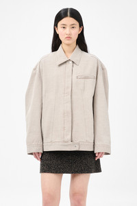 Details · Italian denim · 100% Cotton · Pigment-dyed · Washed finish · Covered placket · Zip closure · Two front welt pockets · Single chest zip pocket · Darted for shape · Dropped shoulders · Button cuffs · Relaxed, slightly oversized fit · W2255DV Description Our Draft Jacket in Vienna Beige Wash. Produced in a pigment-dyed Italian denim with a washed finish, the women's darted Draft Jacket has a slightly oversized, relaxed straight fit and features a covered placket, a zip closure and two welt front pockets. This garment is manufactured using carefully sourced material with a unique treatment process that will give each garment an individual shade and appearance. This technique could result in some color bleed onto lighter garments or surfaces. The garment shall be shaped by its wearer and will naturally distress over time to finish the design process.