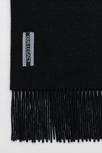 Details · Italian fabric · 100% Wool · Soft hairy knit · Twisted fringes · OUR LEGACY woven label · Rectangular shape · A4248EAB Description Our Estate Scarf in Black Double Wool. Made in Italy from a heavyweight wool fabric, the Estate Scarf has a soft feel, twisted fringes and features the Our Legacy stitched woven label. The scarf measures 220 cm x 27 cm including fringes.