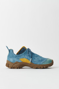 Details · Italian suede leather upper · Contrast panel construction · Polyurethane toe cap · Vibram sole · Asymmetrical lacing · Rounded leather laces · Rubber coated lace tips · Metal OUR LEGACY rivet on tongue · Oval heel pull · Generous fit · A2257GSO Description Our Gabe shoe in Sunkissed Ocean Suede. Produced in an Italian suede with a contrast panel construction, Gabe has a generous fit and features asymmetrical lacing, rounded leather laces with rubber coated tips, a contrast polyurethane toe cap, a Vibram sole, an oval heel pull and a metal OUR LEGACY rivet on the tongue. This product is crafted from carefully sourced leather. As a natural material, leather carries subtle traces of the animal's life. These natural imperfections bring a unique character to each product, expressing an original and authentic look. The product shall be shaped by its wearer and naturally distress over time to complete the design process.