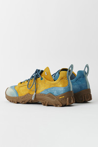 Details · Italian suede leather upper · Contrast panel construction · Polyurethane toe cap · Vibram sole · Asymmetrical lacing · Rounded leather laces · Rubber coated lace tips · Metal OUR LEGACY rivet on tongue · Oval heel pull · Generous fit · A2257GSO Description Our Gabe shoe in Sunkissed Ocean Suede. Produced in an Italian suede with a contrast panel construction, Gabe has a generous fit and features asymmetrical lacing, rounded leather laces with rubber coated tips, a contrast polyurethane toe cap, a Vibram sole, an oval heel pull and a metal OUR LEGACY rivet on the tongue. This product is crafted from carefully sourced leather. As a natural material, leather carries subtle traces of the animal's life. These natural imperfections bring a unique character to each product, expressing an original and authentic look. The product shall be shaped by its wearer and naturally distress over time to complete the design process.