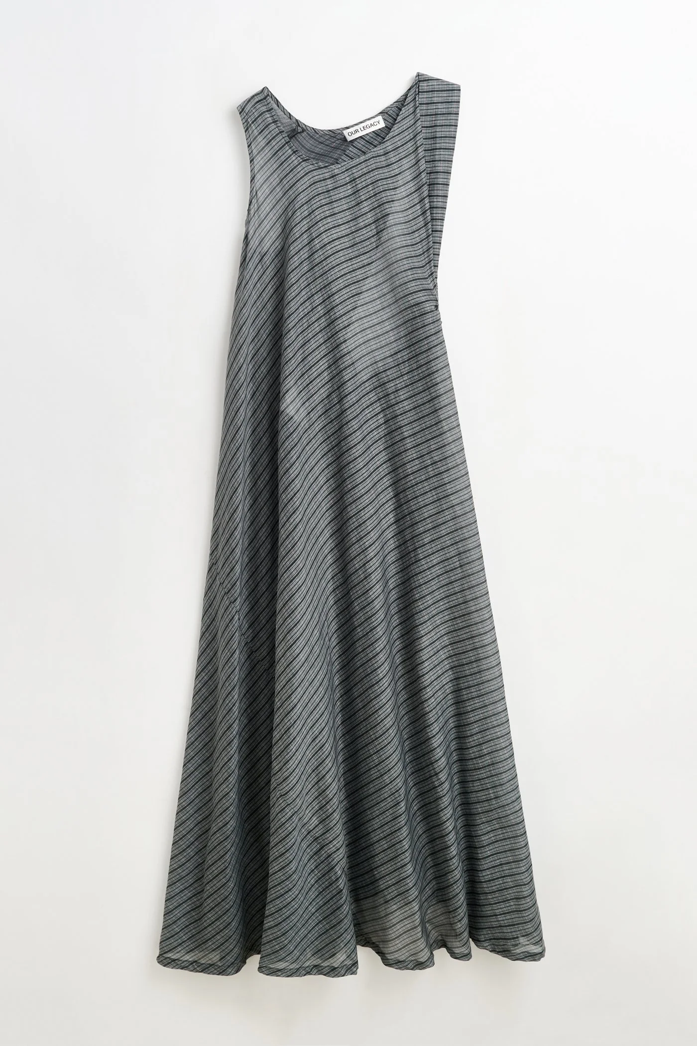 Details · Italian fabric · 69% Cotton 31% Silk · Delicate, sheer check · Sarong construction · Asymmetric neckline · Wrap around design · Flowing silhouette · Cascade detail on back · Side/back tie closure · W2257GP Description Our Gennaker Dress in Picnic Check Cotton Silk is inspired by sails mounted on ships and how they flow in the wind. The women's Gennaker Dress features a sarong construction that wraps around the body and ties at the side/back. The flowing, airy silhouette includes an asymmetric neckline and armholes, with the left armhole fabric folding over to create a beautiful cascade effect on the back. This garment is manufactured using a fine and delicate material, carefully sourced for its particular characteristics. The garment shall be shaped by its wearer and will naturally distress over time to finish the design process.