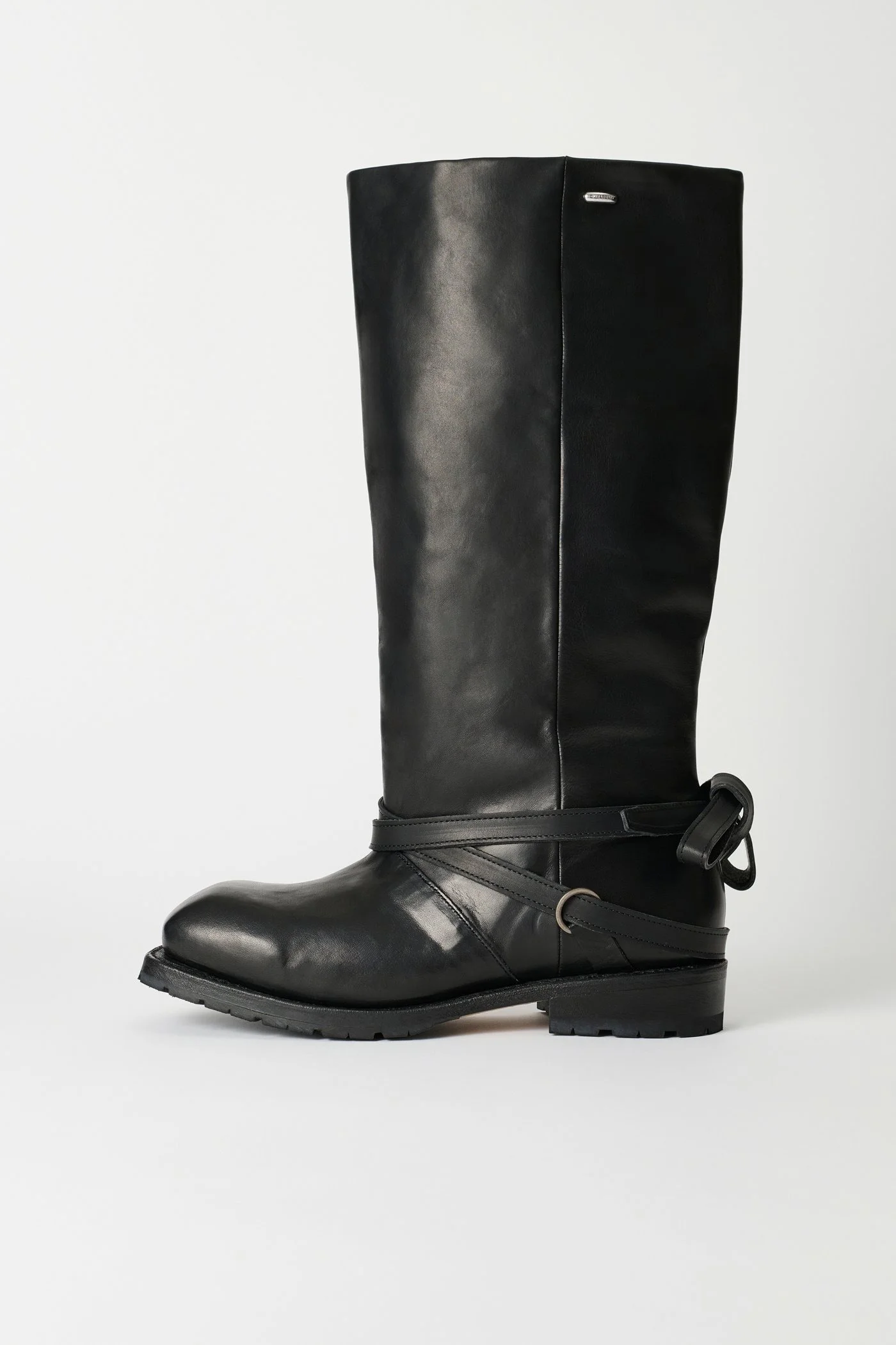 Details · Italian leather · Vibram rubber sole · Leather midsole · Strap details · Mid calf-level shaft · Vegetable tanned · Metal Our Legacy rivet · Flexible leather with rubbery touch · Soft shine finish · A4257HB Description Our High Engine Boot in Black Tensile Cattle Hide. Produced in Italian leather with a rubbery touch and soft shine, this boot features a Vibram rubber sole, leather midsole, and vegetable tanning process. The mid calf-level shaft is inspired by extreme cold weather boots, with a flexible construction that allows for natural creasing around the calf. The boot includes strap details, metal Our Legacy rivet, and a leather string around the ankle for added effect. This product is crafted from carefully sourced leather. As a natural material, leather carries subtle traces of the animal's life. These natural imperfections bring a unique character to each product, expressing an original and authentic look. The product shall be shaped by its wearer and naturally distress over time to complete the design process.