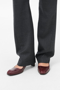 Details · Italian leather · Vegetable tanned · 5 cm block heel · Pointed toe with angular shape · Thin leather sole · Leather covered block heel · Fitted last with pointier toe · Wide opening design · A4257KT Description Our Karasu Pump in True Dyed Lovers Red Leather. Crafted from Italian calf leather with vegetable tanning, this pump features a distinctive angular toe shape with a beak-like front that defines the Karasu family aesthetic. The pump stands on a thin leather sole with a 5cm leather-covered block heel that widens towards the front for a refined silhouette. The fitted last creates a blunted winklepicker design with a wide opening, combining elegance with Our Legacy's signature contemporary edge. This product is crafted from carefully sourced leather. As a natural material, leather carries subtle traces of the animal's life. These natural imperfections bring a unique character to each product, expressing an original and authentic look. The product shall be shaped by its wearer and naturally distress over time to complete the design process.