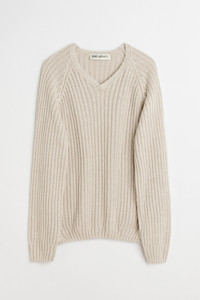 Details · Italian yarn · 100% Silk · 2x1 rib knit body and sleeves · Full needle v-neck · Ribbed cuffs and hem · Raglan sleeves · Relaxed, straight fit · W2253MO Description Our Mate V-Neck in Oyster Cherub Silk. Produced in a soft Italian silk yarn, the women's 2x1 rib knit Mate V-Neck has a relaxed, straight fit and features raglan sleeves, a full needle v-neck collar and ribbed cuffs and hem. This garment is manufactured using a carefully sourced yarn. The natural characteristics of the yarn, combined with the construction of the knit allows the garment to expand when worn. The garment shall be shaped by its wearer and naturally distress over time to finish the design process. To help keep the integrity of the garment please store the garment folded.